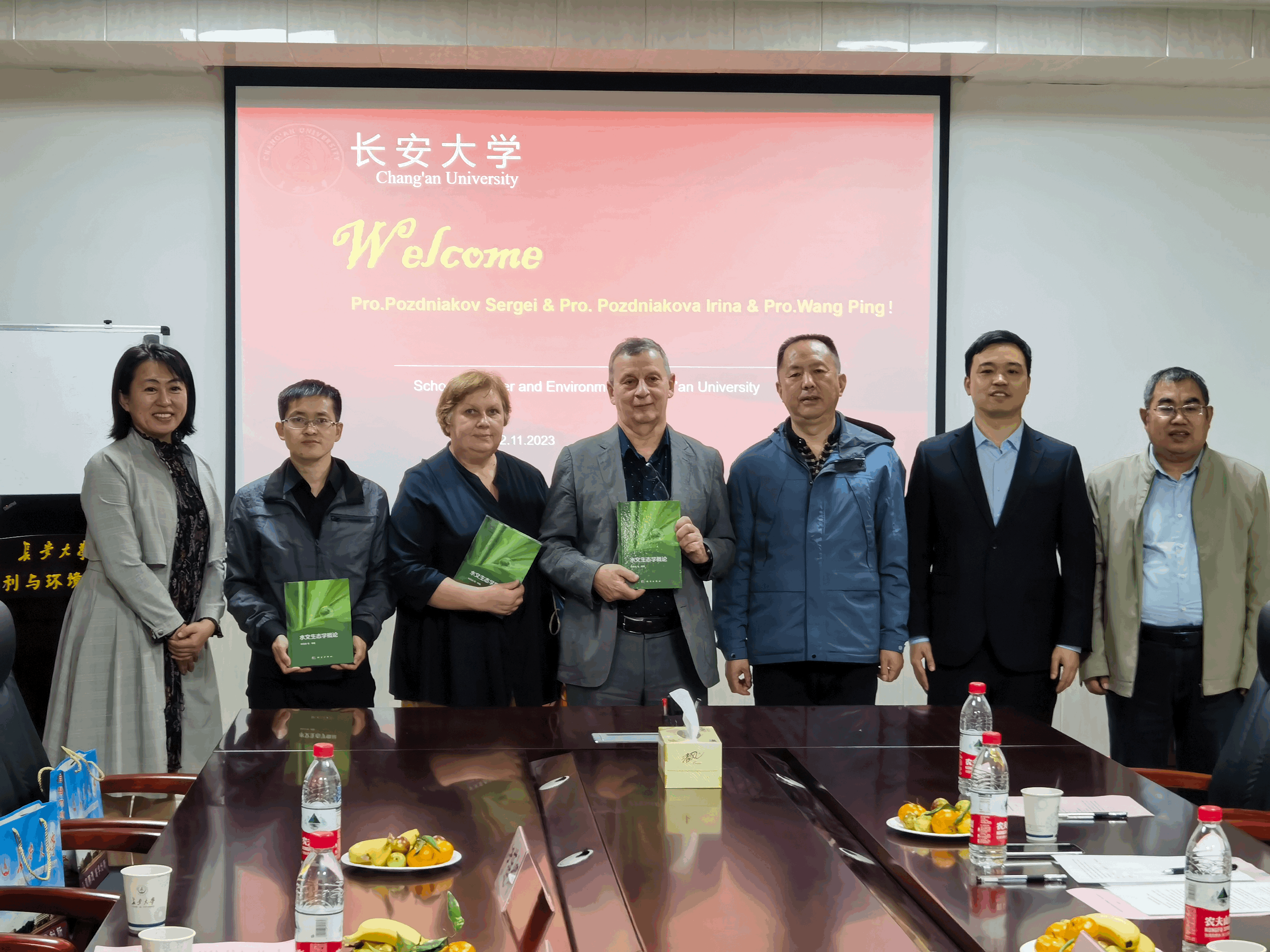 学术报告前,国际合作与交流处处长黄观文、英国上市公司365院长白波、副院长段磊为三位专家举行了欢迎仪式,并赠送了李佩成院士等人编写的《水文生态学概论》一书。三位专家表达了对长安大学的感谢,希望今后继续将科研成果和前沿热点分享给我校师生。