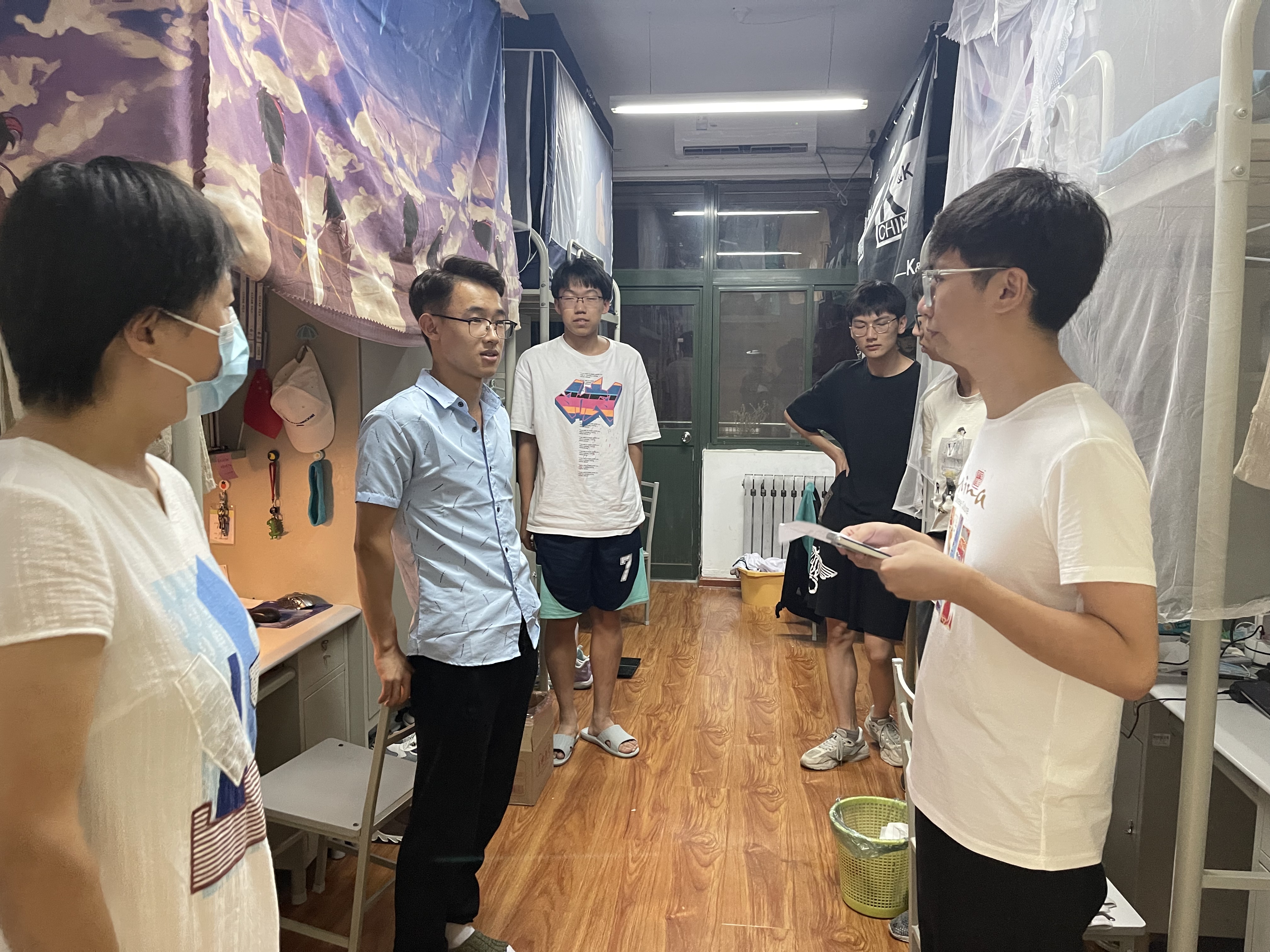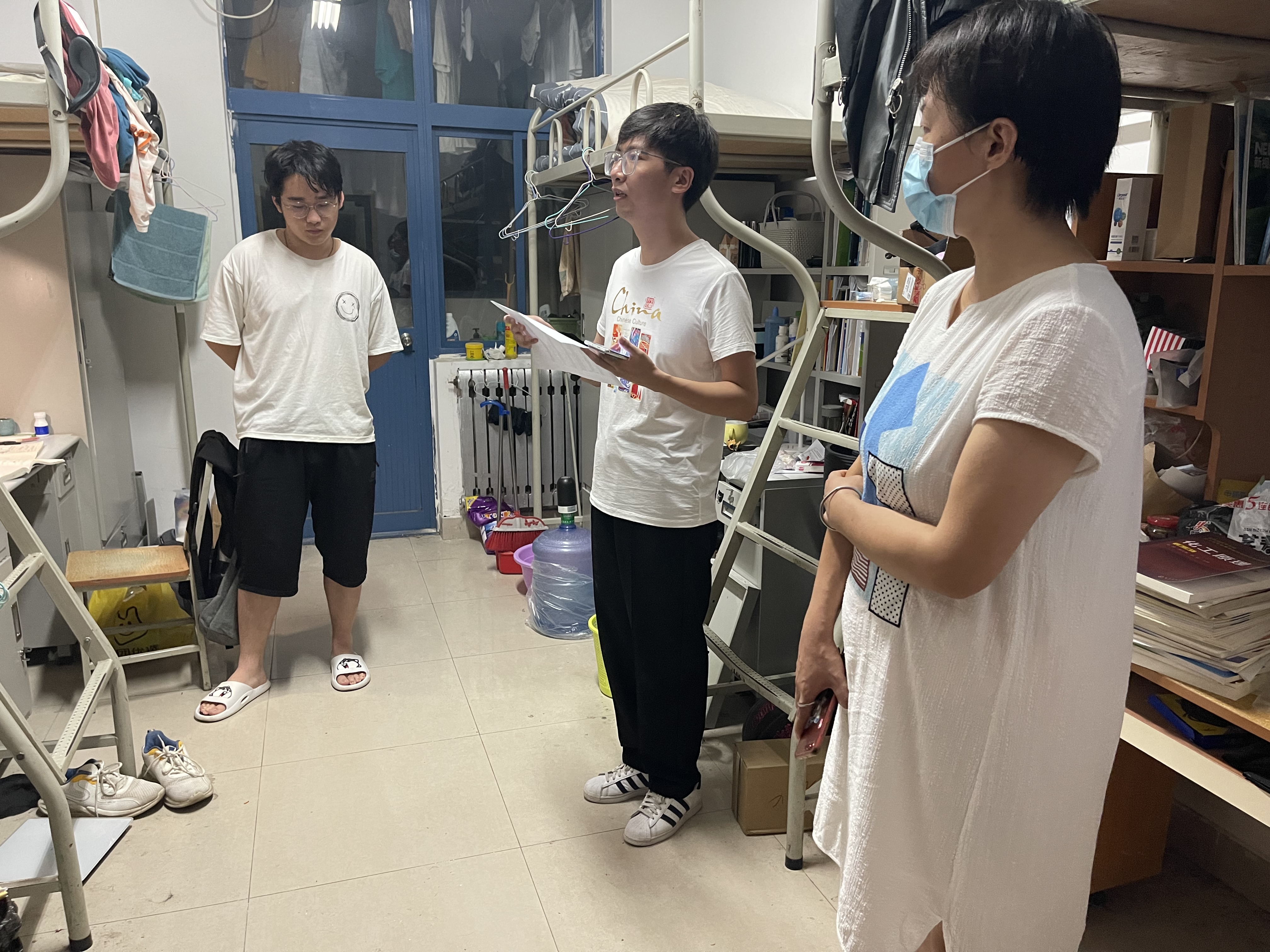 王妍一行先后走访了9号楼、7号楼女生宿舍以及13号楼、22号楼男生宿舍,实现了所有留校学生宿舍全覆盖。在与同学们交流过程中,要求大家一定严格遵守学校的各项管理规定,做好疫情防控个人防护;鼓励“新室友们”相互理解包容,要学会同辈互助,养成良好的生活作息习惯,提高学习效率以积极的心态面对考研和科创实验;叮嘱同学们暑期天气炎热,注意防暑降温,在校期间有任何问题一定要向老师反映。留校生们纷纷表示感谢学院老师们的细心安排和温暖慰问,大家一定会遵守管理规定,不负老师们的嘱托和期望,将会以优异的成绩回报母校。