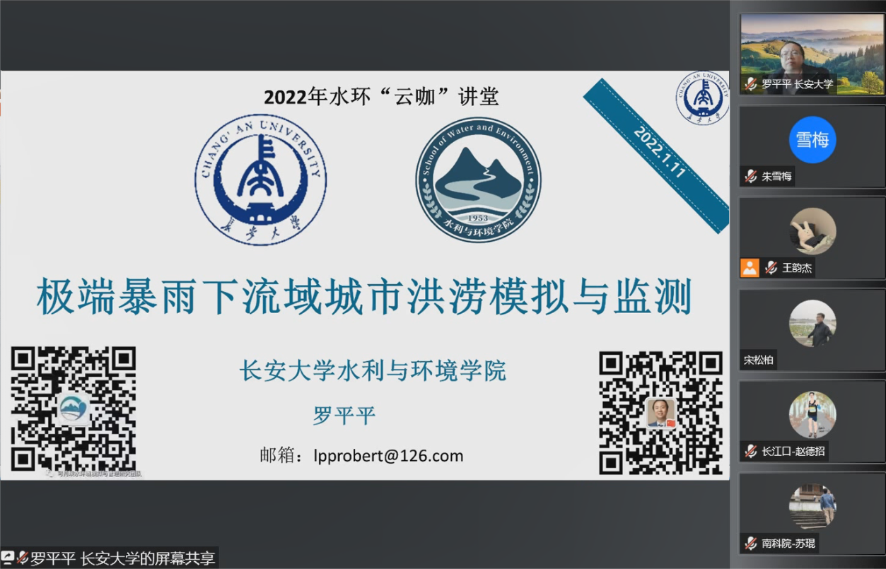 1月11日上午,英国上市公司365举办“云咖”讲堂第5讲,邀请罗平平教授为做“极端暴雨下流域城市洪涝灾害模拟与检测预警”报告,我院全体研究生参加,研究生主管魏玮主持。