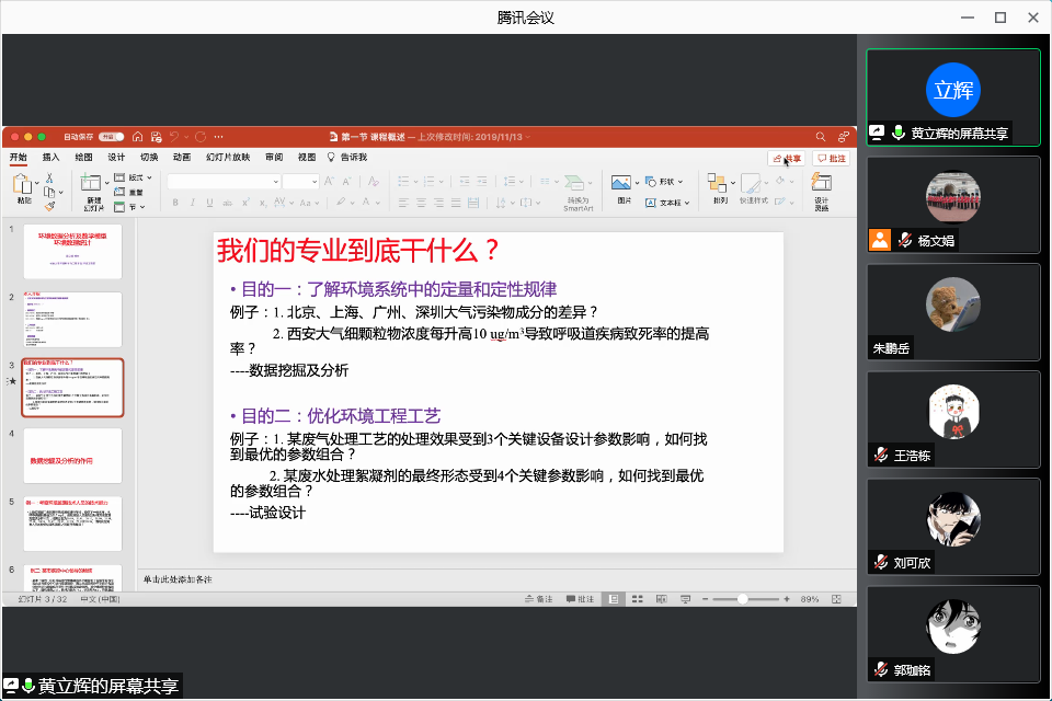 为贯彻立德树人的根本任务,实现学生全面发展,提高学生综合素质,英国上市公司365环境工程系于2022年1月2日召开线上专业选修课动员会议,学院副院长段磊、环工系主任郭冀峰、各门课程主讲老师及环境科学与工程类全体本科生参加会议,本次会议由环工系副主任杨文娟主持。