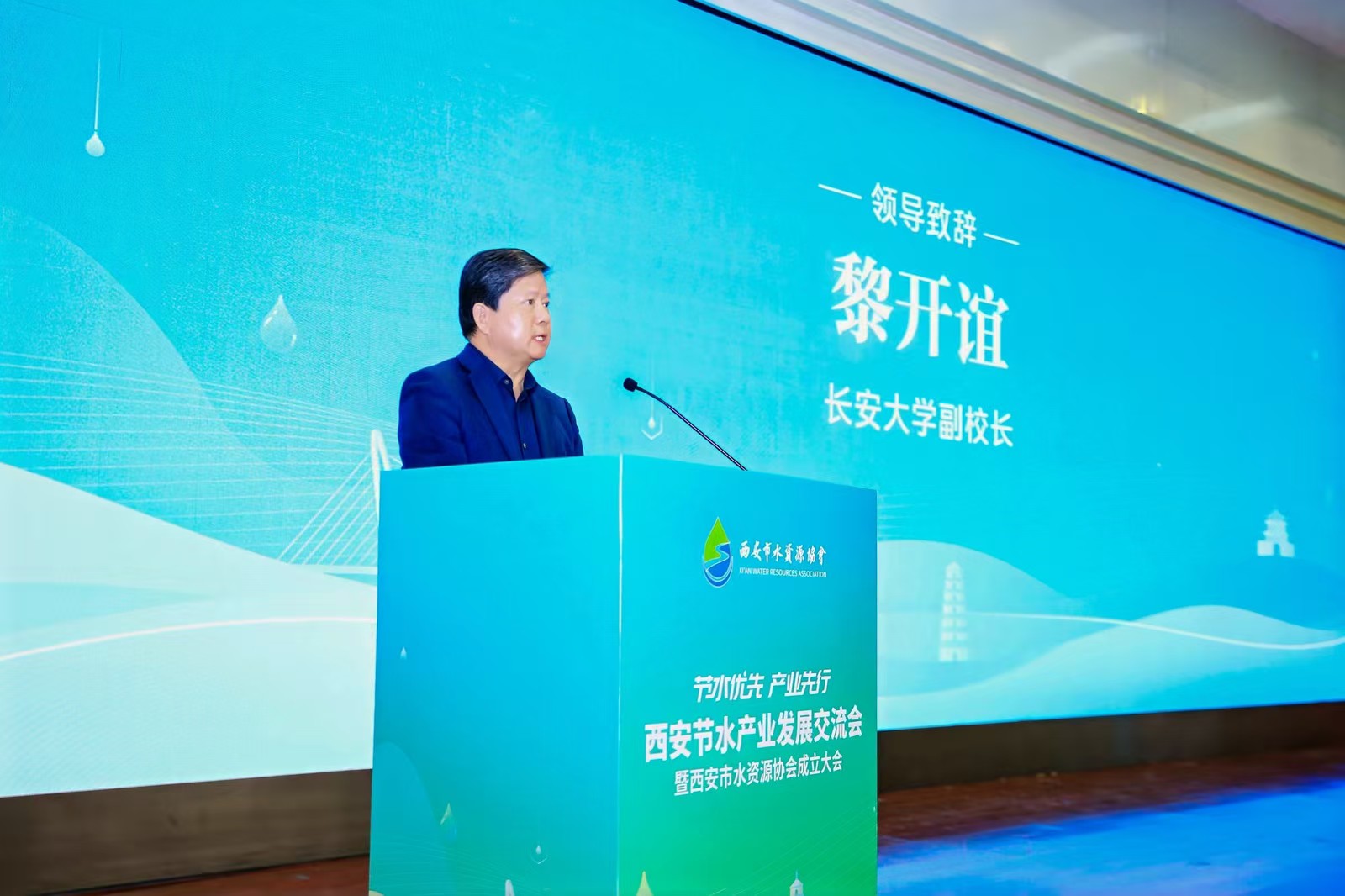 黎开谊在致辞中指出,以习近平同志为核心的党中央高度重视水安全问题,提出了“节水优先、空间均衡、系统治理、两手发力”的新时代水利工作方针,为节水治水管水提供了科学指南和根本遵循。西安市水资源协会的成立,汇聚了政府、企业、高校、科研机构等多方力量,为我校涉水学科带来了新的发展机遇。学校将以此为契机,在学科建设、科学研究、人才培养、社会服务等方面积极作为,推动更多科技成果转化落地,打造校地校企合作样板,为推动经济社会高质量发展提供有力支撑。