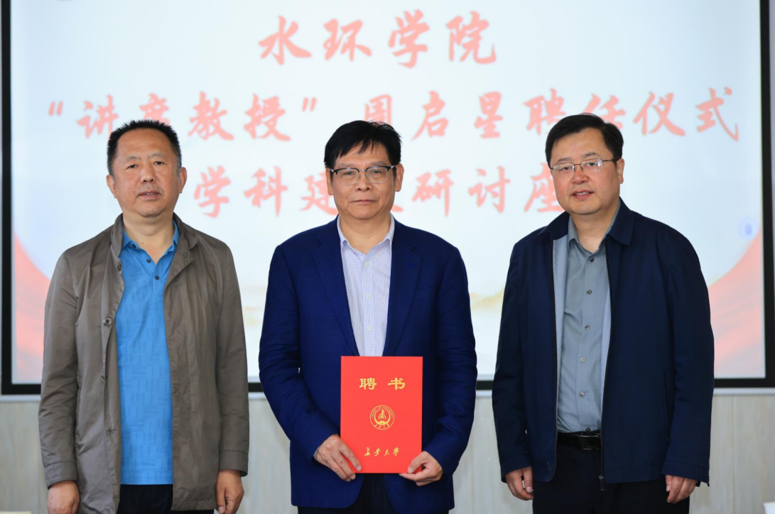 会议伊始,白波发表了热情洋溢的欢迎致辞,向与会者简明扼要地介绍了学院的概况以及学科发展规划,强调了人才引进在提升学院学科建设及科研教学水平中的关键作用,并对周启星教授的加盟表示了热烈的欢迎。紧接着,院党委书记张骞文宣读了长安学者“讲席教授”的聘任文件,并与白波共同为周启星教授颁发了聘书,这标志着周启星教授正式成为了我院高层次人才队伍中的一员。在随后的表态发言环节中,周启星教授满怀感慨地表达了加入学院的喜悦与期待,并围绕相关最新研究进展和学术贡献,分享了他丰硕的学术成果,为在场人员带来了一场学术盛宴。