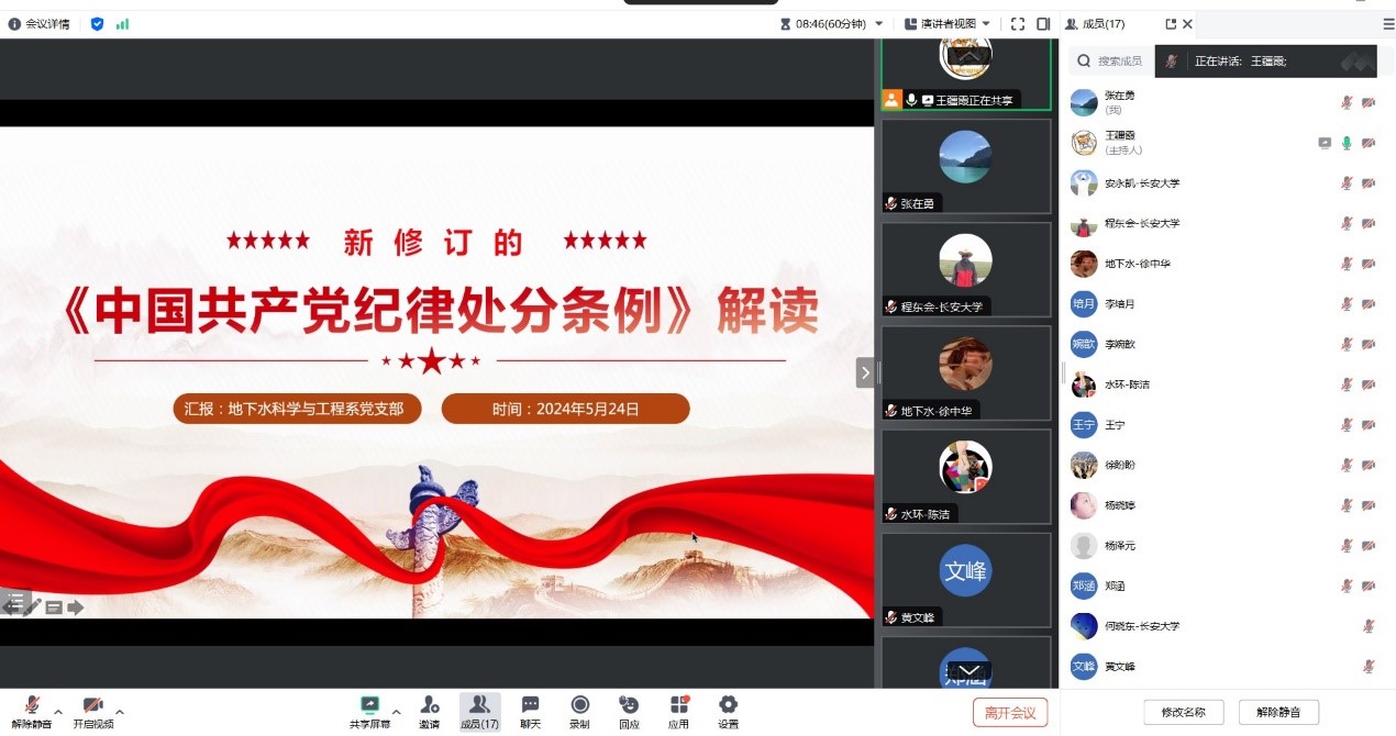 “学党纪 强党性”专题党课——地下水科学与工程系党支部解读《中国共产党纪律处分条例》