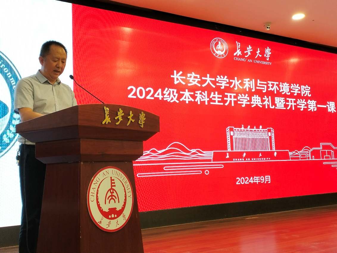 白波为开学典礼致辞,他对260名新同学的到来表示热烈欢迎,白波在讲话中指出,2024年是贯彻党的二十届三中全会精神、推进教育强国及长安大学高质量发展的关键年。他勉励全体新生学以成人,涵育道德品行;博学慎思,发扬创新精神;坚毅执着,敢于奋斗追梦,争做可堪大任的时代新人,以青春奋斗致敬伟大事业、伟大时代和伟大国家!